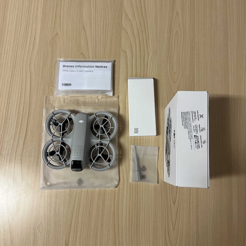 Obsah balení: DJI Neo, Intelligent Flight Propeller Guard, Gimbal Protector, Screwdriver